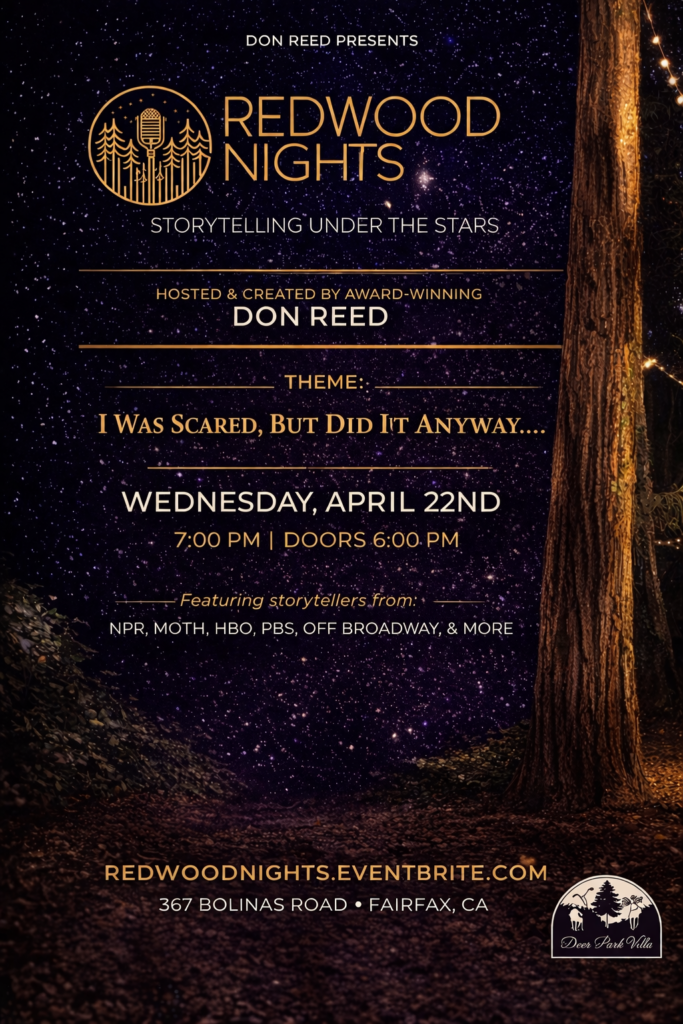 "One of the best shows I have participated in is Don Reed's Redwood Nights Storytelling show. It has everything: an empathetic host, a beautiful venue, a crowd that values connection, and fellow performers who know how to tell their stories. There is nothing else like it in the greater Bay Area."